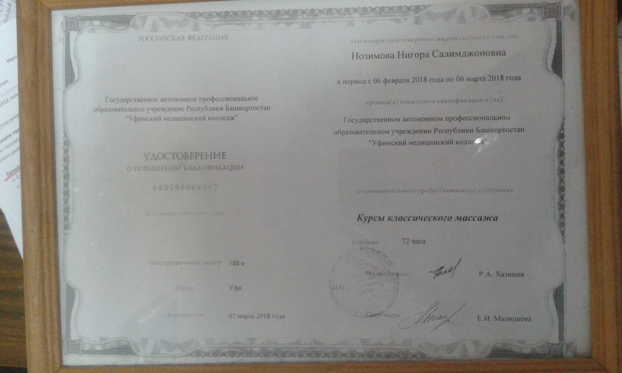 • Массаж проводит квалифицированный специалист (документ).